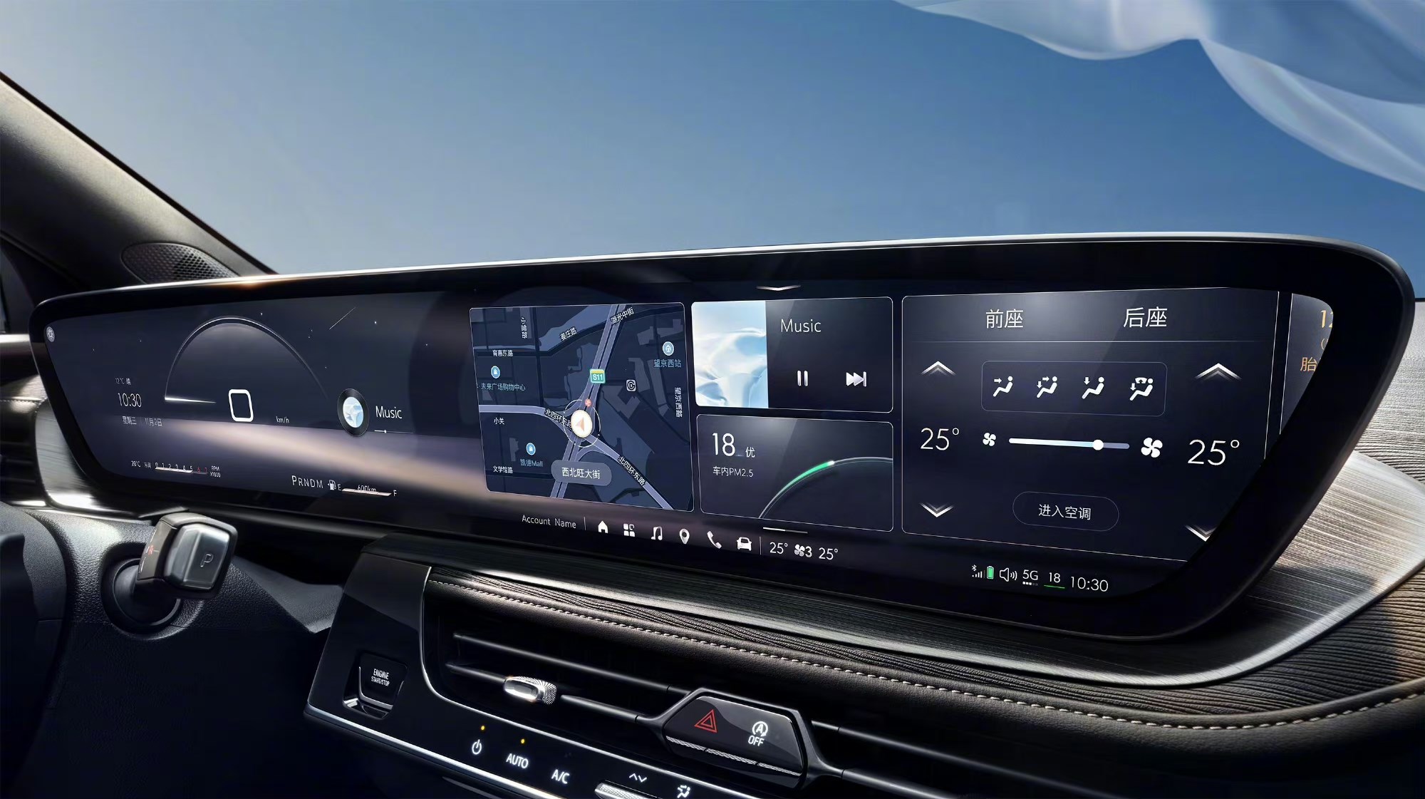 全新君越采用全新一代VCS智能座舱设计,配备30英寸弧面6K屏幕,中控屏内置高通骁龙8155车规级芯片,根据介绍,曲面屏分辨率达到6008×934,微曲面屏幕支持高精度多点触控,采用防眩光低反射表面处理和防指纹处理。