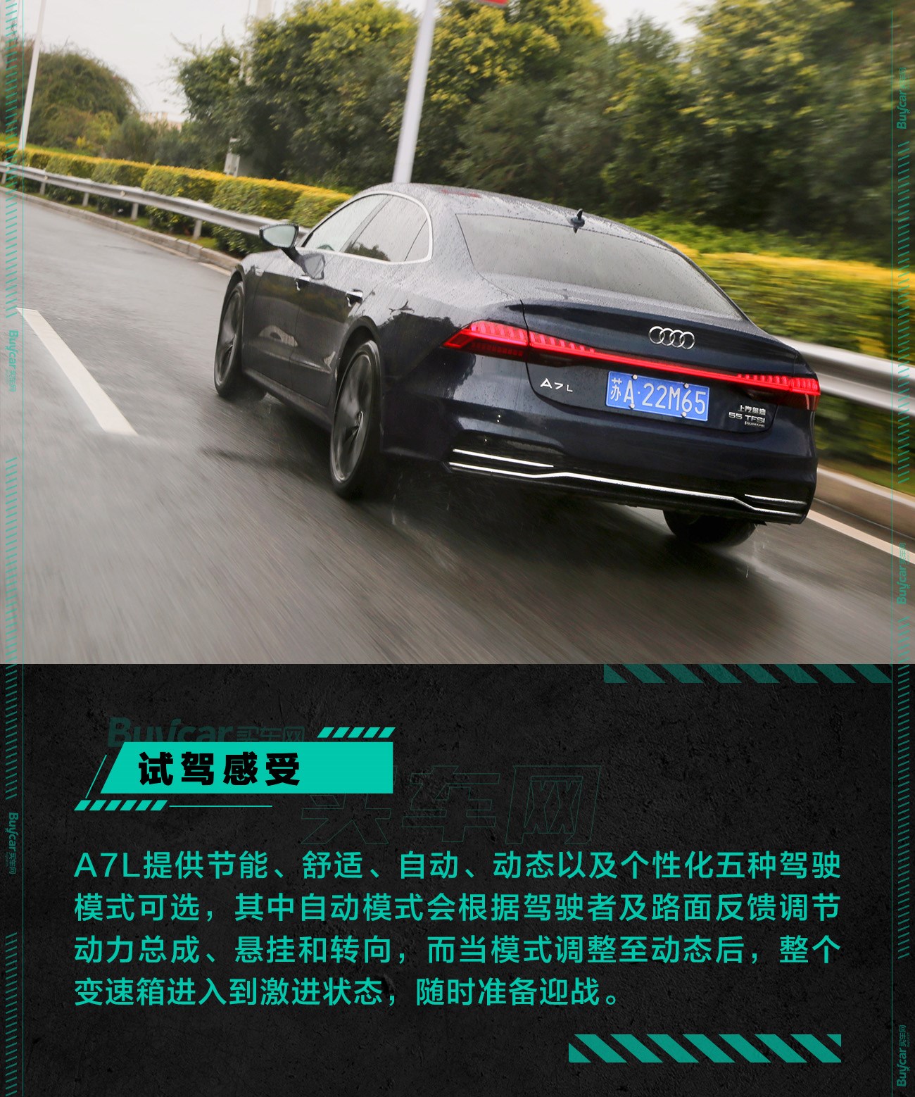 5.6秒的破百成绩证明了3.0T版A7L的动力,大脚油门的瞬间一定会让你感觉到自己花了六七十万的乐趣,整个加速过程是非常线性的感觉,可能不会让你感受到那么暴躁,但这种畅快带有一丝优雅的加速感,不也正符合A7L的定位吗?