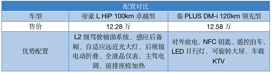 近期可以举的一个例子是吉利的帝豪L HiP冠军版,你看连名字都叫“冠军版”,非常直白地把秦PLUS冠军版当做对手,两款车无论从价格、动力形式、车身尺寸和定位都太对位了,如果你在看A,一定要看看B,建议研究一下谁更适合自己。