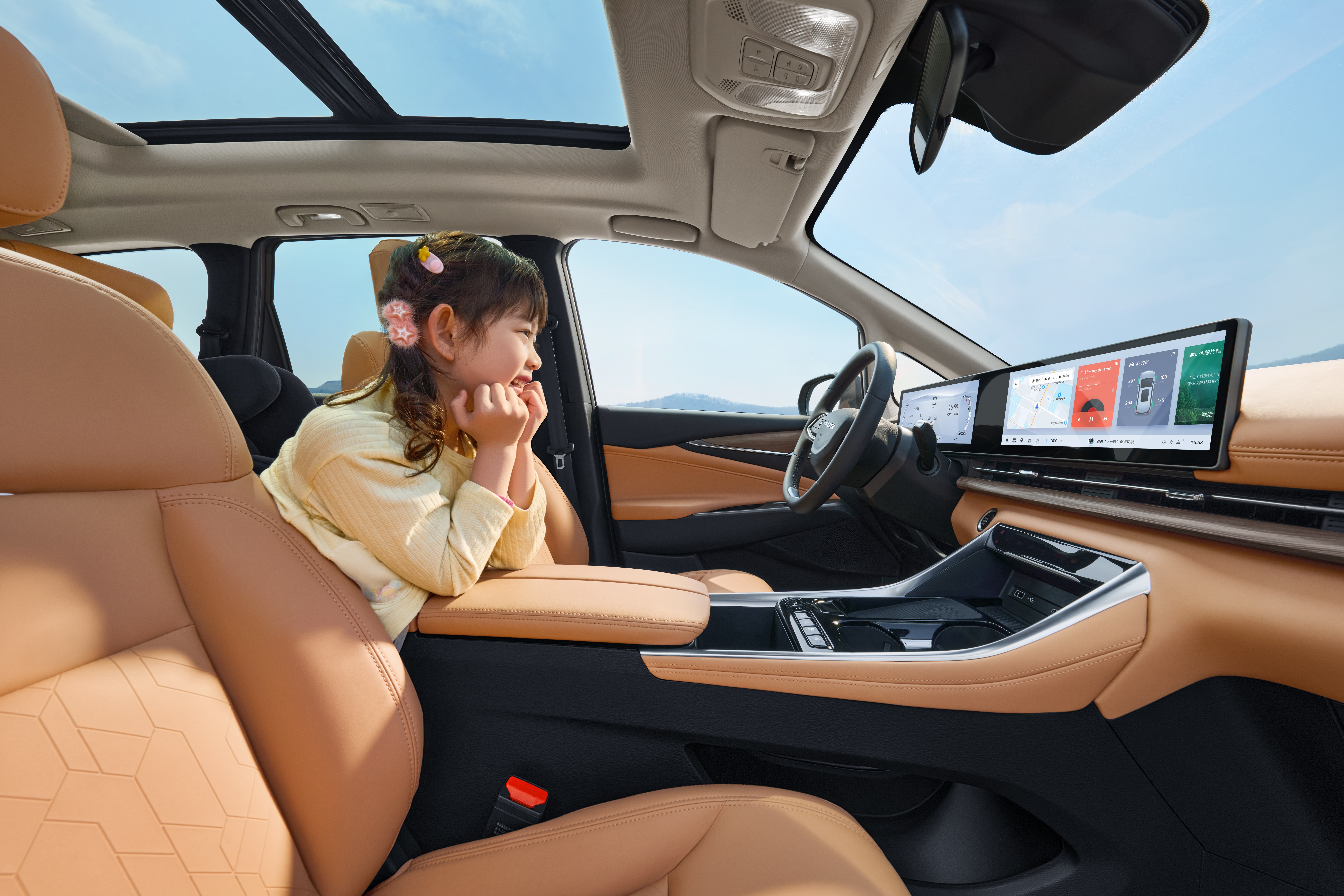 车内设计风格较为简约,配备双12.3英寸一体式屏幕、贯穿式空调出风口、双辐方向盘以及怀挡设计,中控屏内置腾讯TAI 4.0车联网系统,全面升级实时地图导航、在线QQ音乐、车载微信等APP,新一代车机交互系统支持“可见即可说,连续对话”方式,此外,新车还提供远程控制功能。