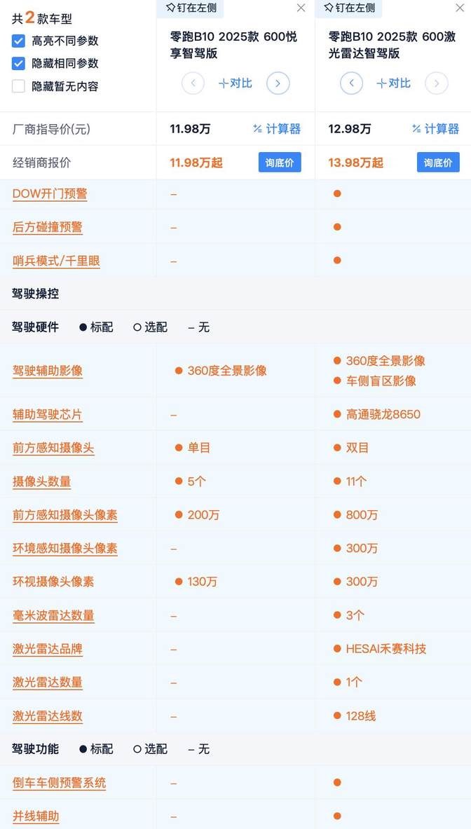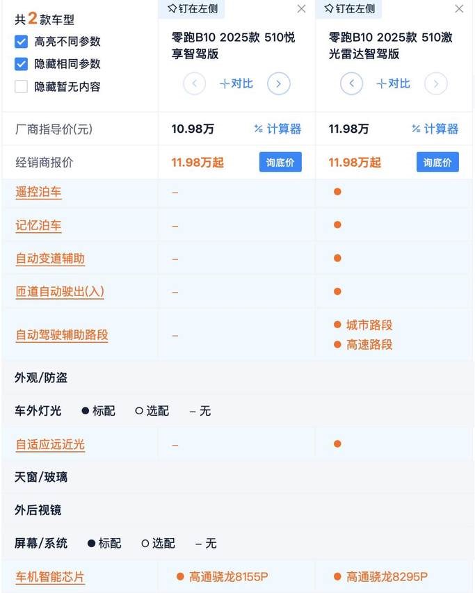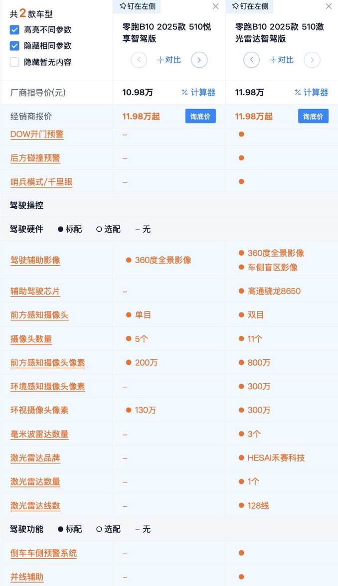 那么悦享版和510激光雷达版,谁更具性价比?