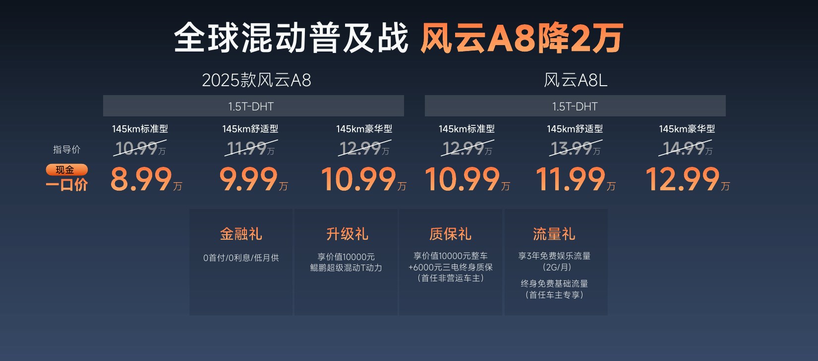 全民高性能,节能零妥协!4月10日,超能混动新家轿——2025款风云A8于奇瑞“混动之夜”焕新上市,以8.99万元起的现金一口价,将国民混动家轿的价值推向全新高度。作为奇瑞以全球标准打造的轿车,风云A8集高节能、高性能、高安全、高智能四大优势于一身,不仅能在全场景出行中为用户带来卓越体验,更带来“5重礼遇”,开启全民混动出行新篇章。
