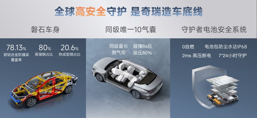对于用户而言,安全才是最大的豪华。为了守护用户出行的一次万一,风云A8充分发挥奇瑞安全优势基因,全车基于全球五星安全标准开发,高强度钢占比达80%、热成型钢占比达20.6%,前铝合金防撞横梁覆盖率78.13%。同时,风云采用本特勒热成型一体式门环设计,拥有同级领先10气囊配置,其中侧气帘长1983.7毫米覆盖面更广,且支持6秒保压,能后在发生碰撞时保障乘员舱结构的完整性,并降低二次伤害,守护用户出行安全。