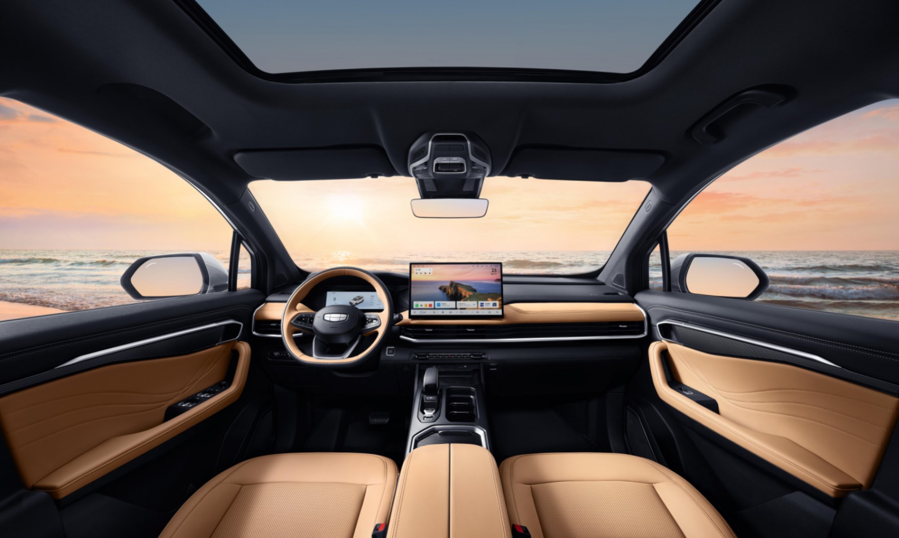新车尾部造型方正,使用了贯穿式的尾灯,下方则刻印着吉利汽车的英文字母,进一步加强辨识度,底部双边共两出的排气布局还加上了浓郁的镀铬装饰,进一步加强时尚气息。