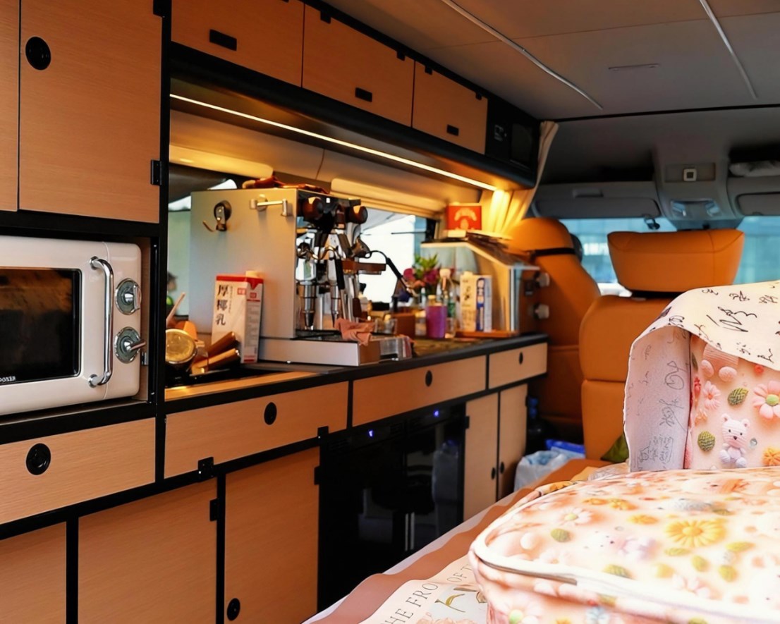 当宋女士第一次见到先锋官V时,所有关于自驾旅居的构想瞬间具象化,“它符合了我想要的那种生活——做咖啡、简单生活、旅行途中随时停下来休息居住。”先锋官V的外观设计让她格外满意,而内部空间则完全按照移动咖啡馆的需求打造。几乎没有犹豫,她当场就做出了购买决定。“这款车太符合我的要求了,所以当机立断就买了。
