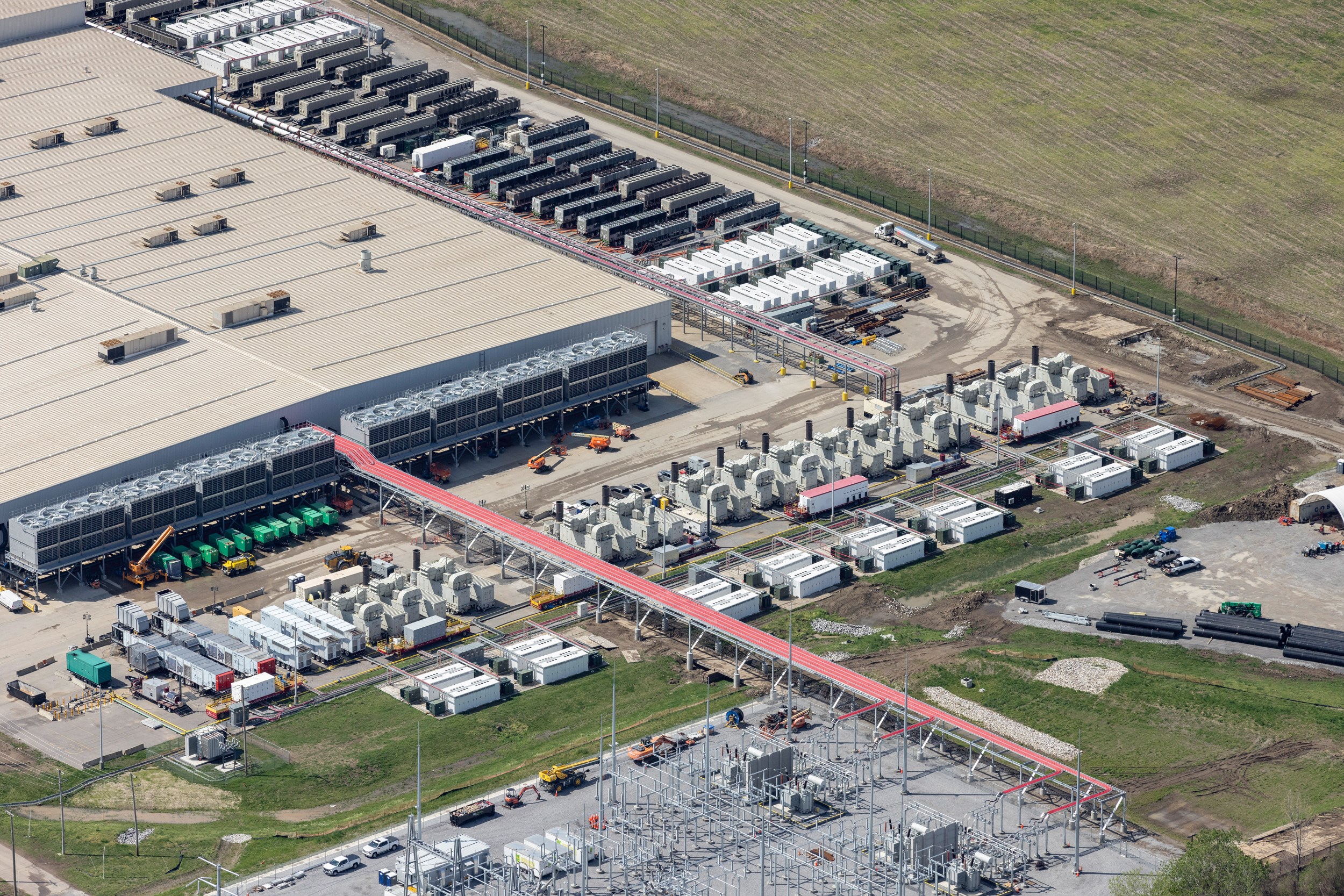 Colossus 2用的是“电网+天然气涡轮机”的双保险供电,基础电力来自田纳西河谷管理局,燃气轮机只是备用,应对电网故障和用电高峰。