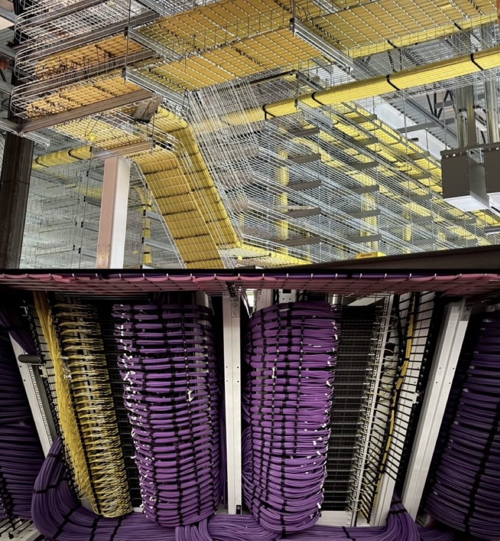 这个“学霸级”模型饭量大得惊人,普通超算半天就会算力枯竭,所以Colossus 2直接用上了媒体测算的55.5万张英伟达最新GB200、GB300GPU,算力堪比140万块上一代H100,混合精度下的理论峰值算力能达到275-348EFLOPS,一秒的运算量比全人类过去几十年的总和还多。