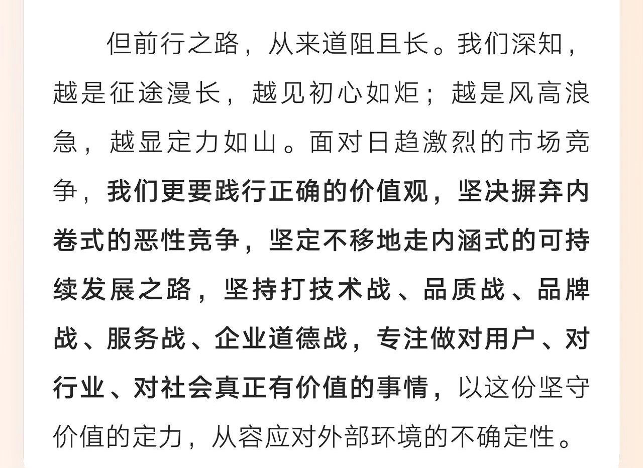 吉利淦家阅在寄语中明确提到了对“内卷式恶性竞争”的摒弃,强调要打“技术战、品质战、品牌战、企业道德战”。这不仅是价值观的表态,更是对当前市场环境恶化的清醒认知。当价格战打到极致,单车利润被无限压缩,如果不能在更高维度建立护城河,消亡只是一瞬间的事。