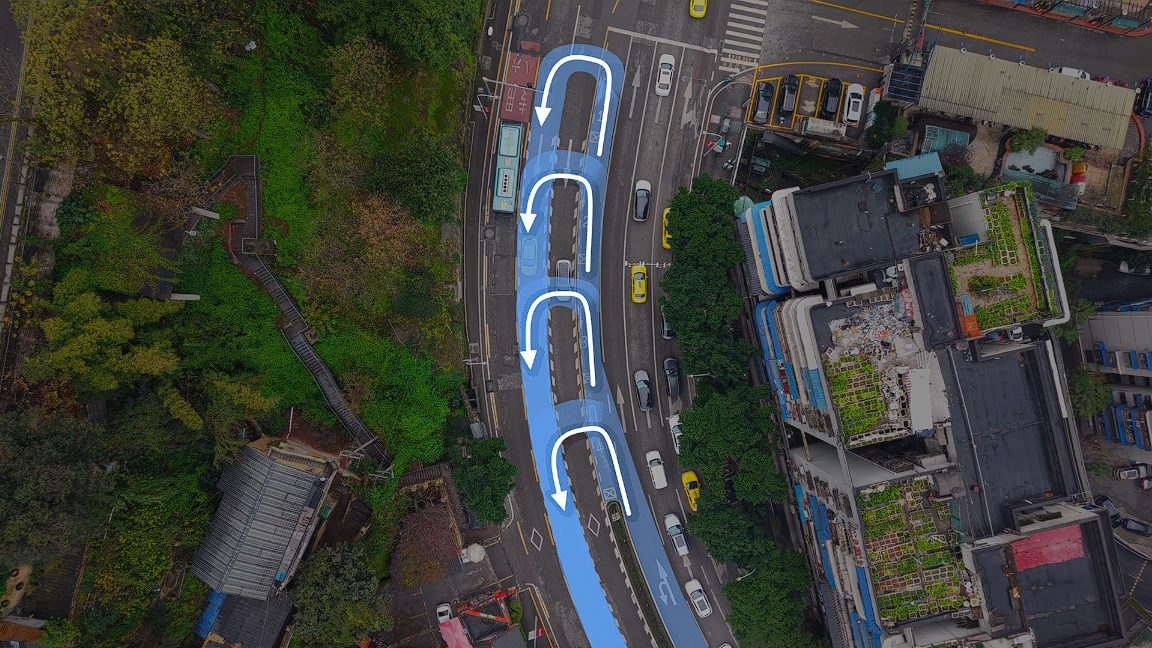 与此同时,VLM云端大模型让V27辅助系统拥有“人脑理解力”——自带常识和世界知识,能基于环境和交通标识等要素智能分析,灵活应对处理罕见交通场景。在重庆极具特色的串联掉头场景中,V27就能够综合交通标识、车道线和其他车辆行为,正确通行。在地下环道中,面对GPS信号弱、路网复杂、岔路繁多等挑战,V27依然能精准识别路径,从容完成选道、通行,犹如轻车熟路的当地老司机。