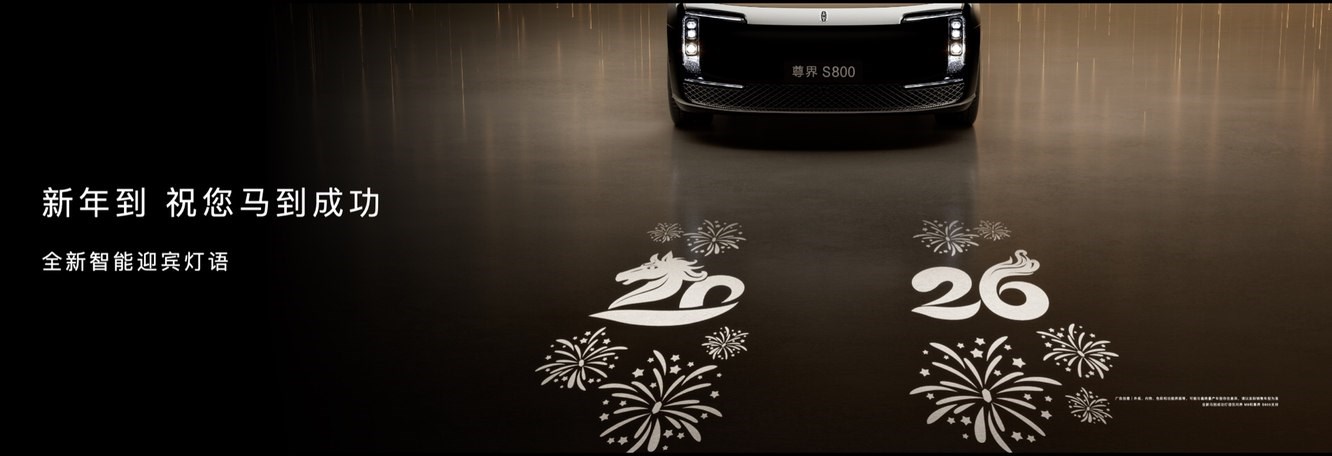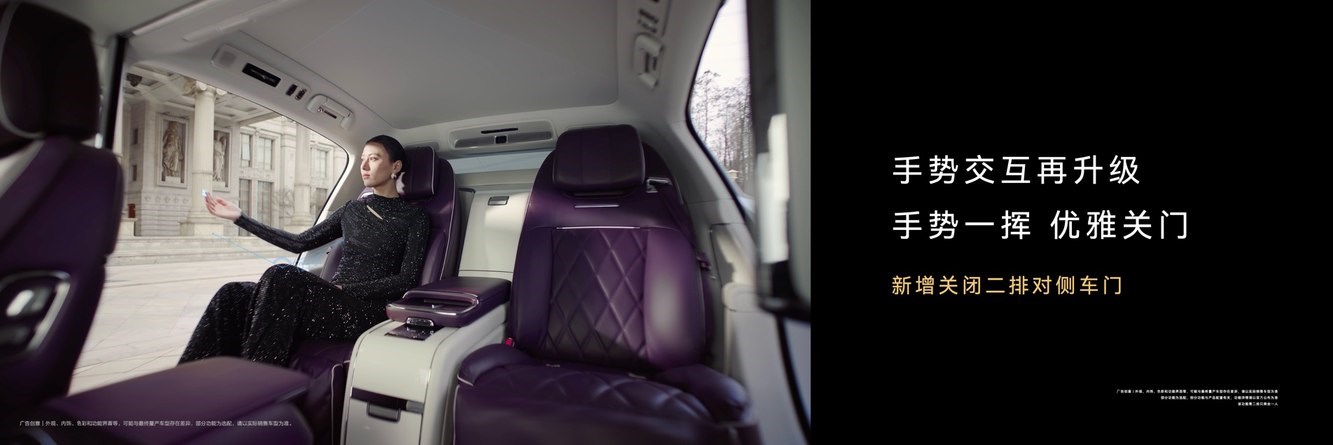 尊界S800常用常新,新春OTA新增全新智能迎宾灯语,专属“马到成功”主题,尊享新年出行礼遇;手势控车再升级,新增手势一挥关闭二排对侧车门功能,交互更便捷、更优雅,让每一公里都在引领时代的标准。