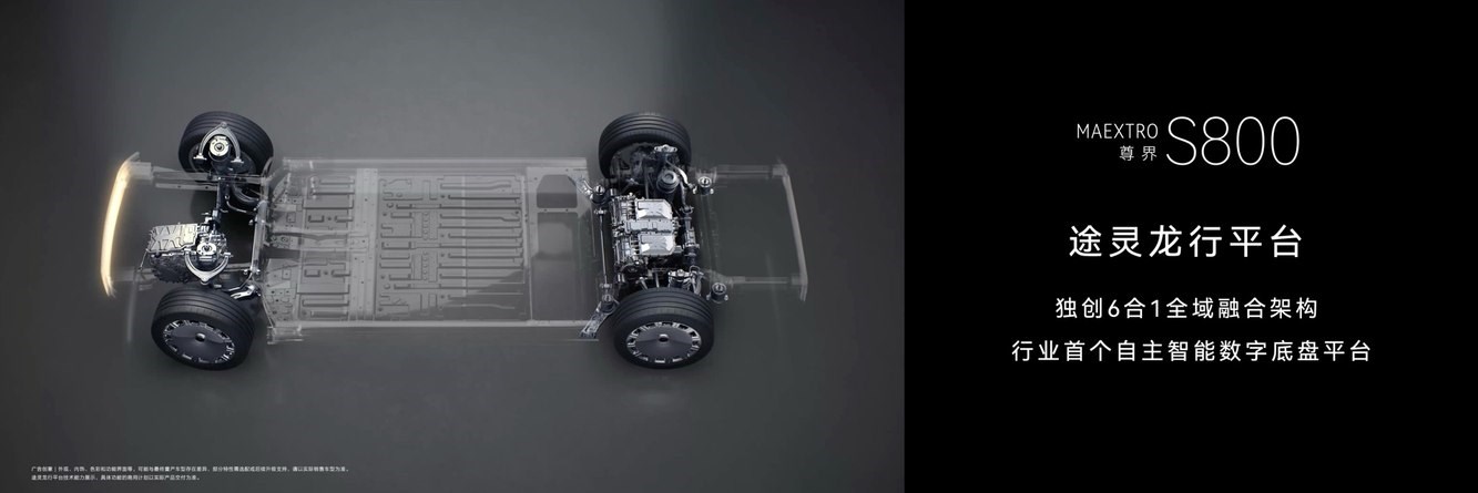 尊界S800搭载途灵龙行平台,自主智能数字底盘,六合一全域融合架构,最小决策链路时延小于1ms,处理能力提升10倍,带来超机动、超灵活、超舒适与超安全的体验提升。自适应扭矩调节与动力分配,实现全维舒适协同控制。路况附着力感知,实现自适应滑移率控制。时空推理悬架,实现颠簸与弯道的事前预判。搭载后轮转向技术,蟹行角度±12°,转弯半径仅5.05m,带来灵活如燕、稳如磐石的操控体验。