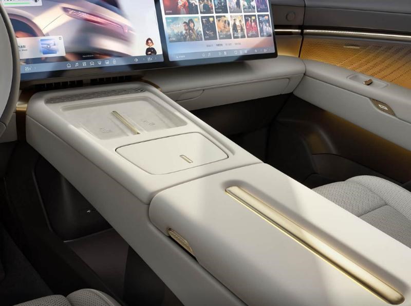 与众08的车内座椅采用了NAPPA真皮包裹以提升触感和档次感。带有腿托的副驾座椅具备14向电动调节和120°放倒功能,可实现“一键躺平”,从而方便用户小憩。除此之外,柔光化妆镜、第二排折叠小桌板、背磁吸接口、座椅10点气动按摩/加热/靠背10°可调等提升乘车舒适性和便利性的设计也都一应俱全。而10档可调的1.74㎡智能调光天幕、隐私玻璃、车内氛围灯光系统以及7.1.4声道20扬声器杜比全景声音响系统等配置,则从细节处彰显车厢的豪华驾乘感。