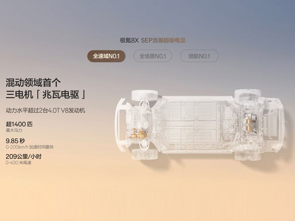 极氪8X的底气,显然来源于其硬核的技术实力。它基于浩瀚-S超级电混架构打造,并借此放出了三个大招。