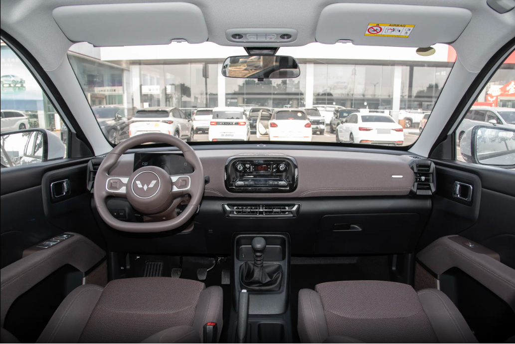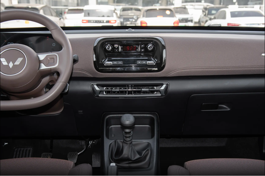 来到车内,五菱星光560内饰不搞虚的,全是实用的,整体是环抱式的,中控台简单好操作,核心按键都是实体的,盲按不费劲。有两种棕色双色内饰,家用看着特温馨,还耐脏。用料方面,中控上面是硬塑料(毕竟这个价位),但经常碰到的地方,比如门板、中央扶手,都是软的,还带缝线,摸着不廉价。