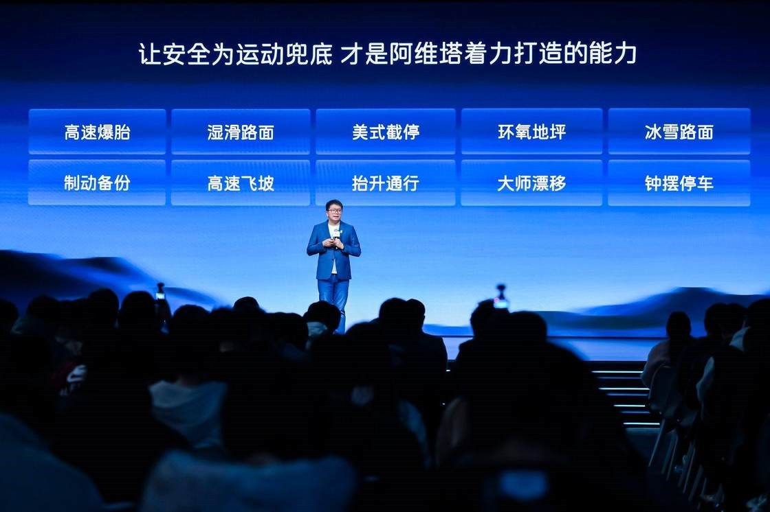 另外,太行智控2.0技术的硬件——前双叉臂后多连杆 + 智能空气悬架 + CDC 动态阻尼减振器,搭配同级少有的液压衬套技术,即便遭遇高速爆胎,也能通过四轮制动力分配 + 左右轮大扭矩差,抵抗横摆力矩,让车辆保持直行并安全减速,这也是阿维塔能行业首次成功挑战 220km/h 连爆四胎的核心原因。