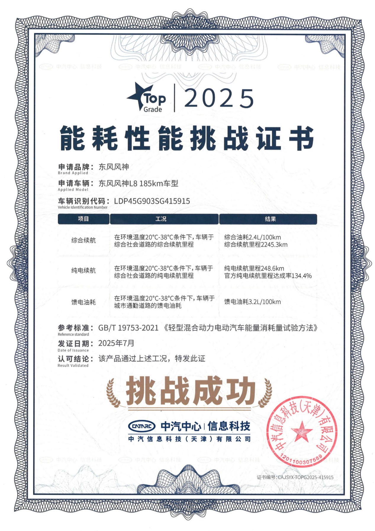 除此之外,马拉松的核心是稳定配速与极致耐力,这一逻辑与风神L8的动力续航表现不谋而合。丰配友常年跨城参赛,对车辆动力平顺性与续航能力要求极高,风神L8搭载马赫电混系统,凭借4挡DHT技术实现线性柔和的动力输出。中汽中心实测2245km综合续航、2.4L/100km综合油耗,既满足了跨省出行的补能需求,也为家庭用户实现了省油省心的全场景出行体验。