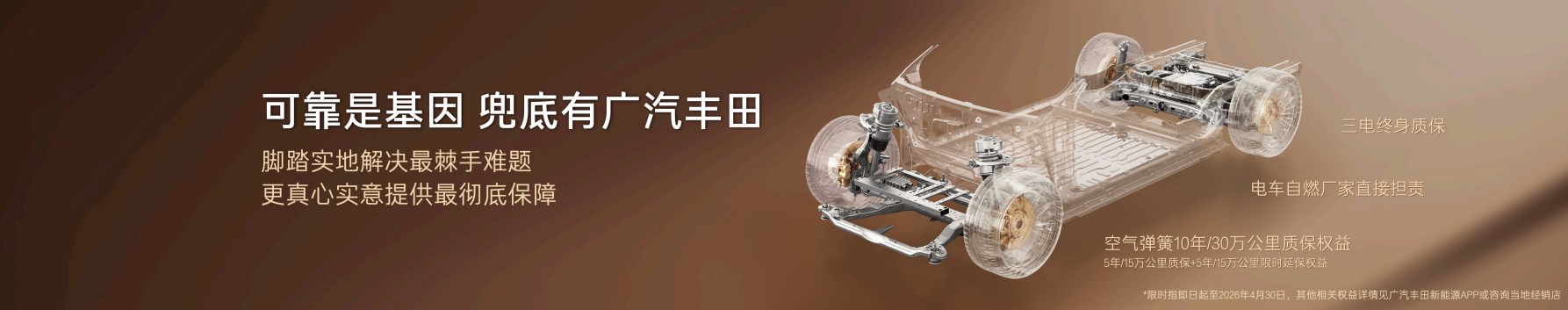 目前,广汽丰田用户运营体制已经全面搭建完成,全渠道搜集用户声音,每小时响应、每周复盘、每月落地、快速响应。细微的品质疑虑,广汽丰田也绝不敷衍,调动全体系上万名丰田认证技师,全供应链追根溯源,为用户彻底解决。行业首创“厂家三担责”政策,已成为写进合同里的郑重承诺,脚踏实地解决用户最棘手难题,真心实意提供最彻底保障,这就是广汽丰田在新能源时代为用户带来的独一无二的确定性。广汽丰田全面进化的服务2.0,核心就是让用户安心无忧,既能尽情拥抱智电的愉悦,又能时刻享受有人托底的从容。