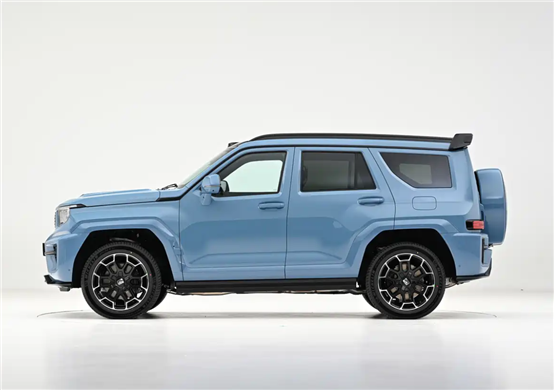 车身侧面,新车维持了硬派越野标志性的方正车身结构,接近1:1的车身高宽比带来了极具冲击力的视觉效果,窗线与腰线向后倾斜收敛的设计,为方正的车身加入了灵动的俯冲姿态。宽厚的轮眉翼子板进一步强化了硬派属性,车顶则集成了激光雷达传感器,兼顾了智驾硬件布局与车身设计的整体性。尾部方面,新车搭载了官方命名为“祥麟焰尾”的悬浮扰流板,与整车麒麟设计语言形成完整呼应。车身尺寸上,新车长宽高分别为5105/2061/1985mm,轴距达到3000mm,为车内空间表现提供了充足基础。配色方面,新车除专属“敦煌青”车色外,还提供千峰翠、玄武黑、远山灰等多款自然系配色,满足不同用户的审美需求。