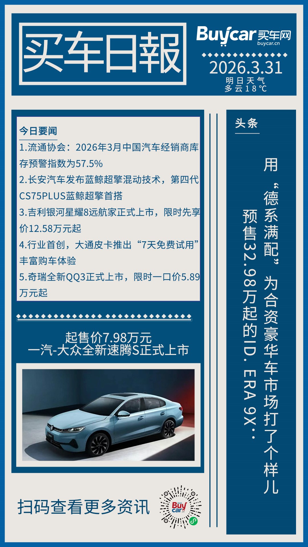 买车日报-20260331-预售32.98万起的ID. ERA 9X:用“德系满配”为合资豪华车市场打了个样儿