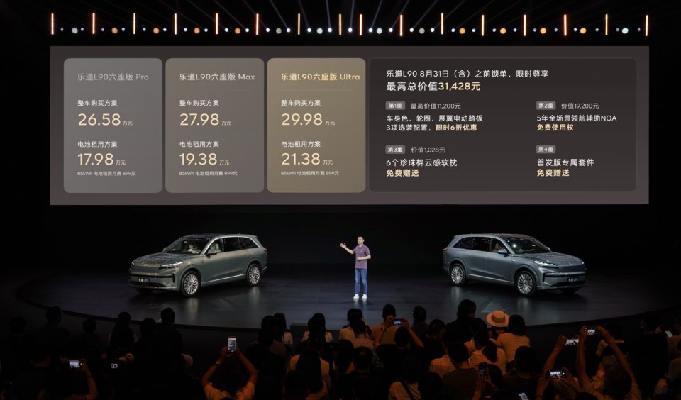 价格这块的话,参照乐道L90的玩法,乐道这款轿车极有可能采用“整车购买”与“电池租用(baas租赁)”双方案。毕竟,L90通过租电方案将大型SUV门槛拉低至17.98万起,且已大获成功。