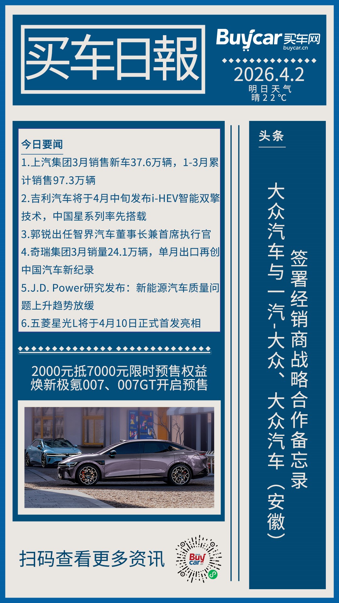 买车日报-20260402-大众汽车与一汽-大众、大众汽车(安徽)签署经销商战略合作备忘录