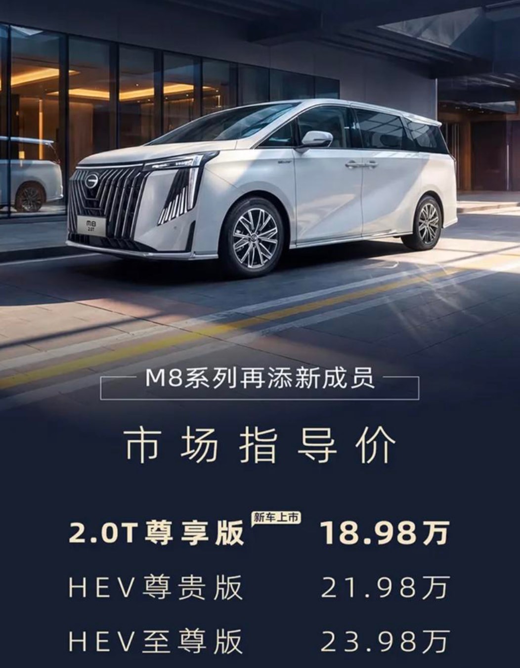 近日,买车网Buycar获悉,广汽传祺宣布2026款传祺M8新增2.0T尊享版车型上市,市场指导价18.98万元,政企双补价16.98万元起。新车搭载传祺高功率2.0TGDI发动机和爱信8AT变速箱动力总成。