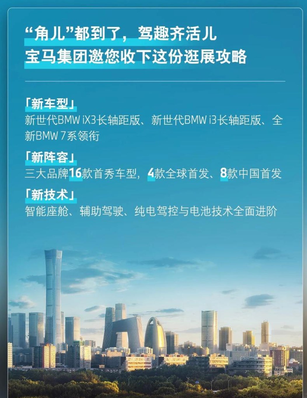 4月8日,买车网Buycar获悉,宝马正式公布了2026北京车展新车阵容。BMW、MINI和BMW Motorrad三大品牌共带来16款新车型。新世代BMW iX3、新世代BMW i3长轴距版、全新BMW 7系以及全新BMW i7四款将迎来全球首发;全球限量70台的BMW Speedtop概念车将迎中国首秀,MINI品牌也将携多款个性化车型登场。