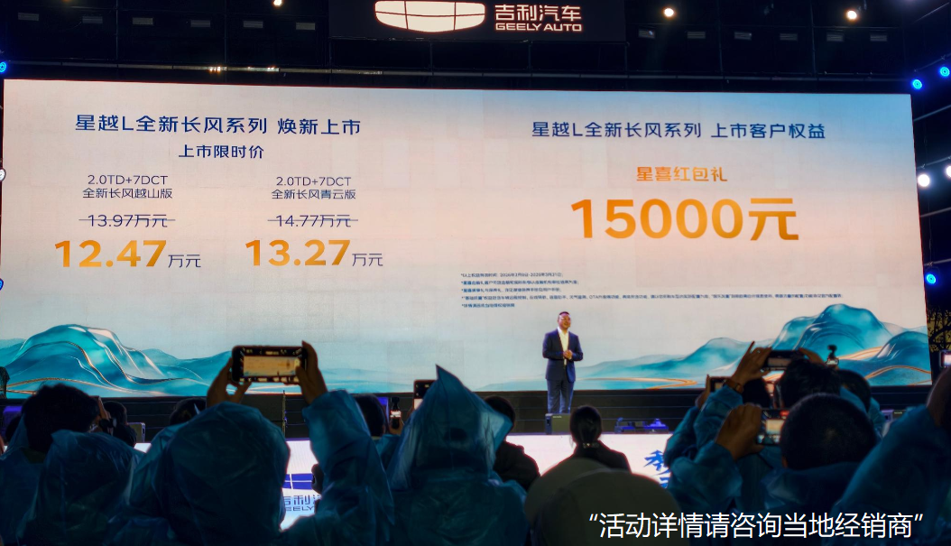 我今天到店里专门问了价格,吉利星越L长风系列就两款车,我给大伙念叨念叨:长风越山版指导价13.97万,现在限时价直接12.47万,长风青云版指导价14.77万,限时13.27万,等于直接优惠1万5。不少人肯定跟我一样好奇,这限时价能到啥时候?销售说官方这个“星喜红包礼”是到2026年3月31号,不过按吉利以往的套路,到期大概率会延期,或者换个名头接着优惠,不用太着急。