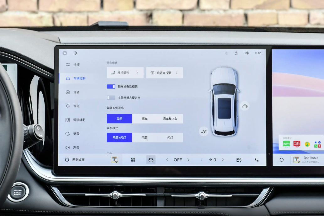 再说说这车机,全新长风系列用的是Flyme Auto系统,芯片是大家很熟的高通骁龙8155,流畅度这块基本不用担心。如果你之前用过魅族手机,上手这套车机简直零门槛,界面逻辑、操作逻辑都很像。实际用起来反应是真快,滑动屏幕很跟手,切APP、开功能都不卡顿,日常用着很舒服。