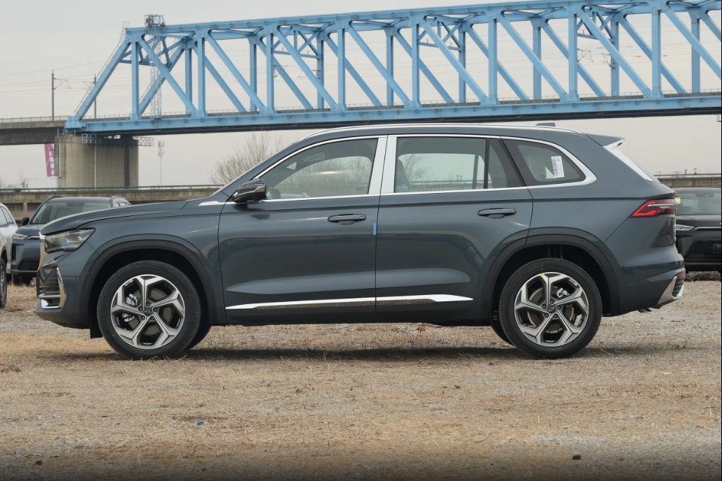 侧面腰线从前面叶子板一直拉到尾灯,笔直又硬朗,配上19寸轮毂,轮胎规格是235/50 R19,整个车身看着特别修长。车长给到4770mm,在这个价位真不多见。对比一下就知道了,本田CR-V是4703mm,2026款丰田RAV4荣放才4620mm,吉利星越L长风系列明显更长一截。