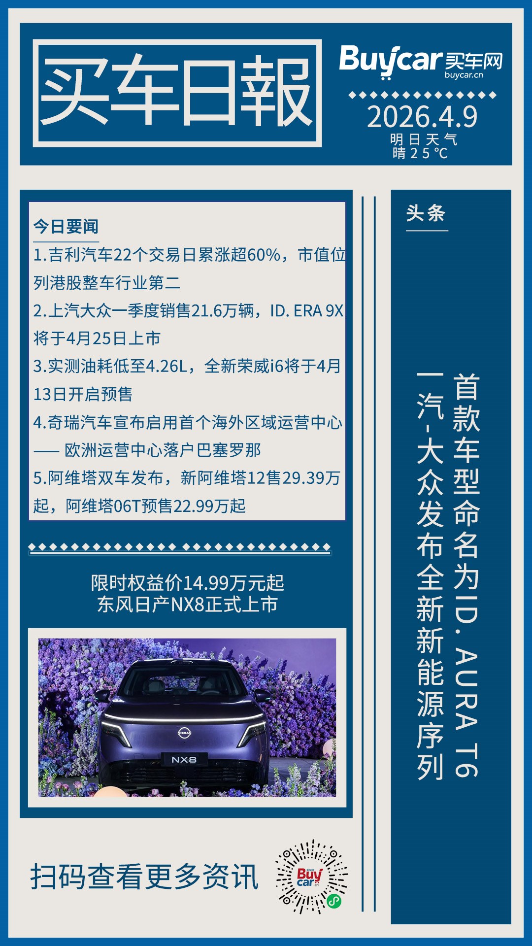 买车日报-20260410-一汽-大众发布全新新能源序列,首款车型命名为ID. AURA T6