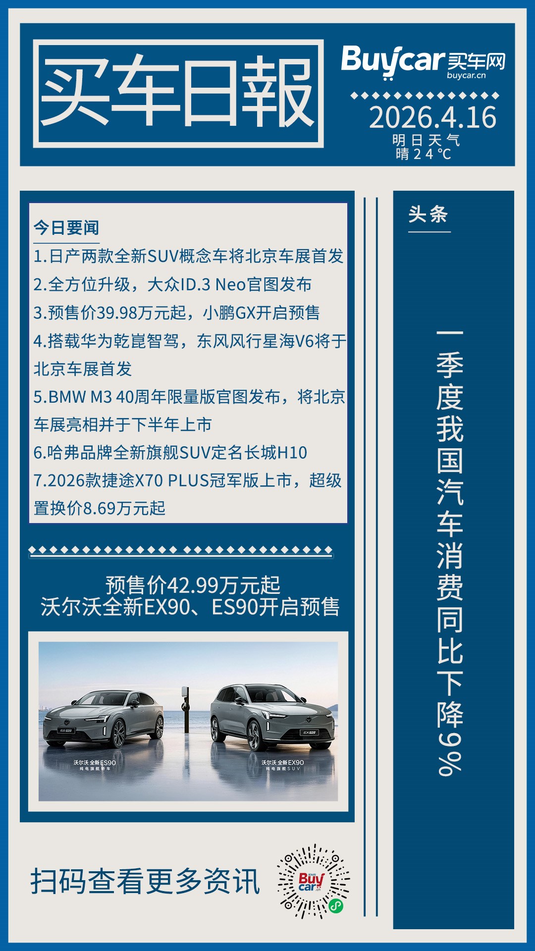 买车日报-20260416-一季度我国汽车消费同比下降9%