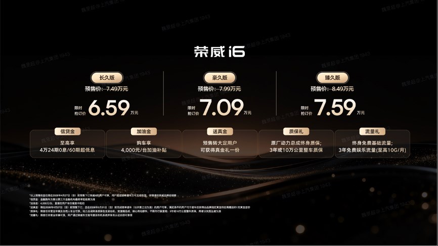 值得一提的是,此次预售,荣威还推出至高4万24期0息、4000元加油补贴、动力总成终身质保、5月底前提车送足金金钞等政策,以“真金白银” 降低用户决策成本,用长期质保兑现承诺,构建产品—价格—服务的完整竞争力闭环。
