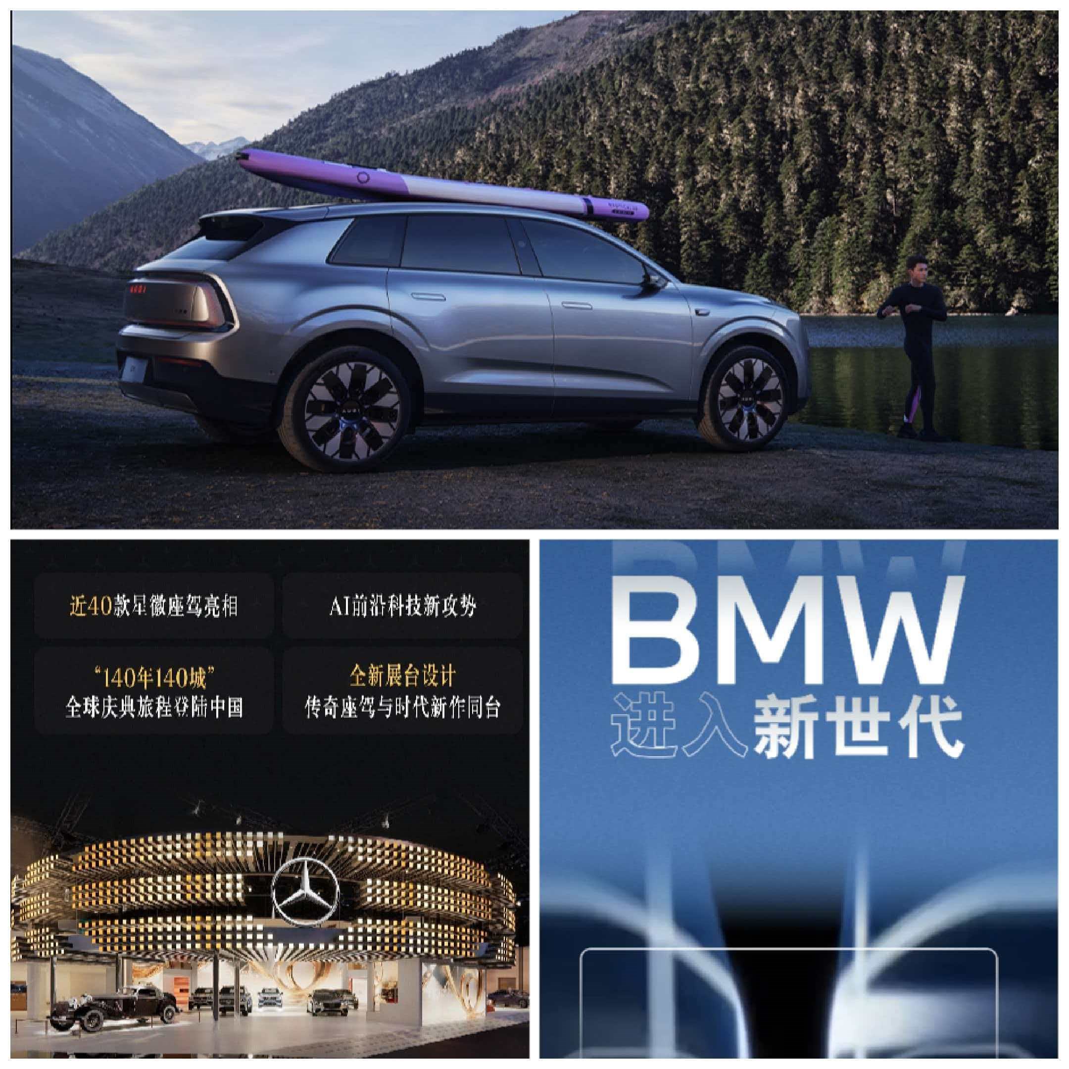相比之下,奔驰、宝马、奥迪(BBA)的阵仗依然庞大,想表示对中国市场的信心和决心。宝马携三大全球首发车亮相,宣布正式进入新世代,为了智能纯电驾趣宝马把车重新造了一遍;140岁的奔驰则带来40款座驾加速“史上最大产品攻势”,还集结了12款经典“神车”,情怀和未来感拉满;字母标和四环标同台的奥迪,则打造出历史和未来的和谐感,E7X更是被视为奥迪对豪华品牌该怎么做的新答案。