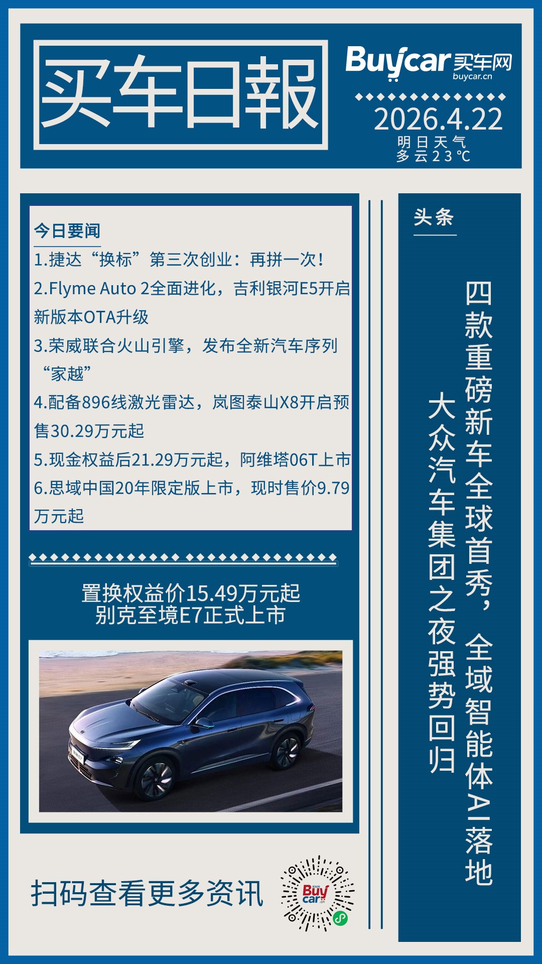 买车日报-20260422-大众汽车集团之夜强势回归!四款重磅新车全球首秀,全域智能体AI落地